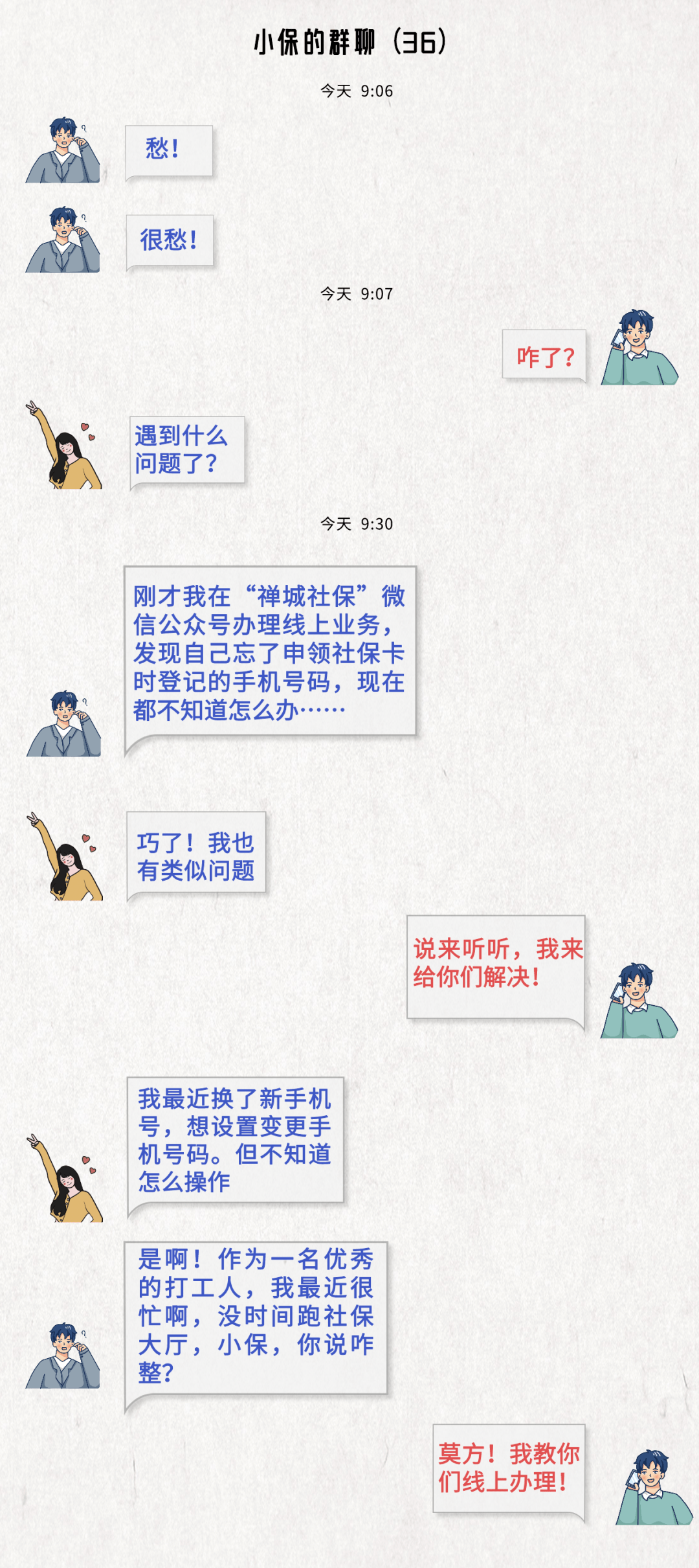 各位街坊看好了!通过 “i社保”APP、“佛山社保”“禅城社保”微信公众号、佛山社保信息网办理线上业务时,如果忘记了申领社保卡时登记的手机号码,或者是手机号码变更了的, 不用担心!几个按键,随时随地在线上就能变更手机号码了,快来学学吧!