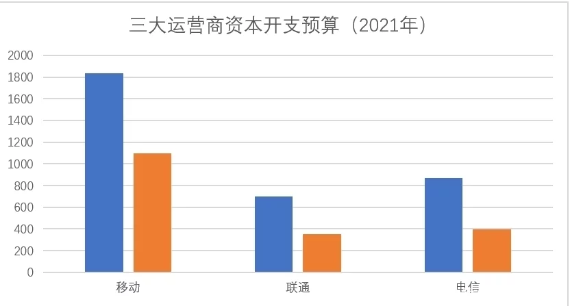 在此前的2020年报中,对于2021年的规划,中国移动表示2021年资本开支预算为1836亿元,5G相关投资计划约1100亿元。中国联通表示,2021年资本开支预算为700亿元,其中,5G投资占一半,为350亿元。计划新建5G基站32万个,累计开通5G基站总数70万个。中国电信则计划,2021年全年的资本开支计划为870亿元,较2020年增长2.6%,其中,涉及5G的开支占比为45.6%,约397亿元。