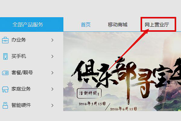 2、接下来,进入相应省份的网页。在新的页面中,将在上面的菜单栏中看到“在线营业厅”。请参考下图进行操作: